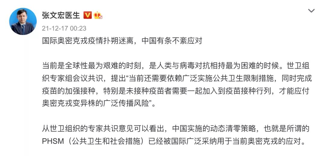 2月17日凌晨,復(fù)旦大學(xué)附屬華山醫(yī)院感染科主任張文宏通過其微博發(fā)聲,國(guó)際奧密克戎疫情撲朔迷離,中國(guó)有條不紊應(yīng)對(duì)。