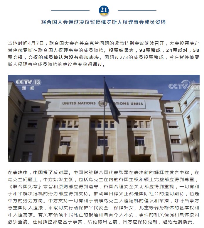 聯(lián)合國(guó)大會(huì)暫停俄羅斯人權(quán)理事會(huì)成員資格